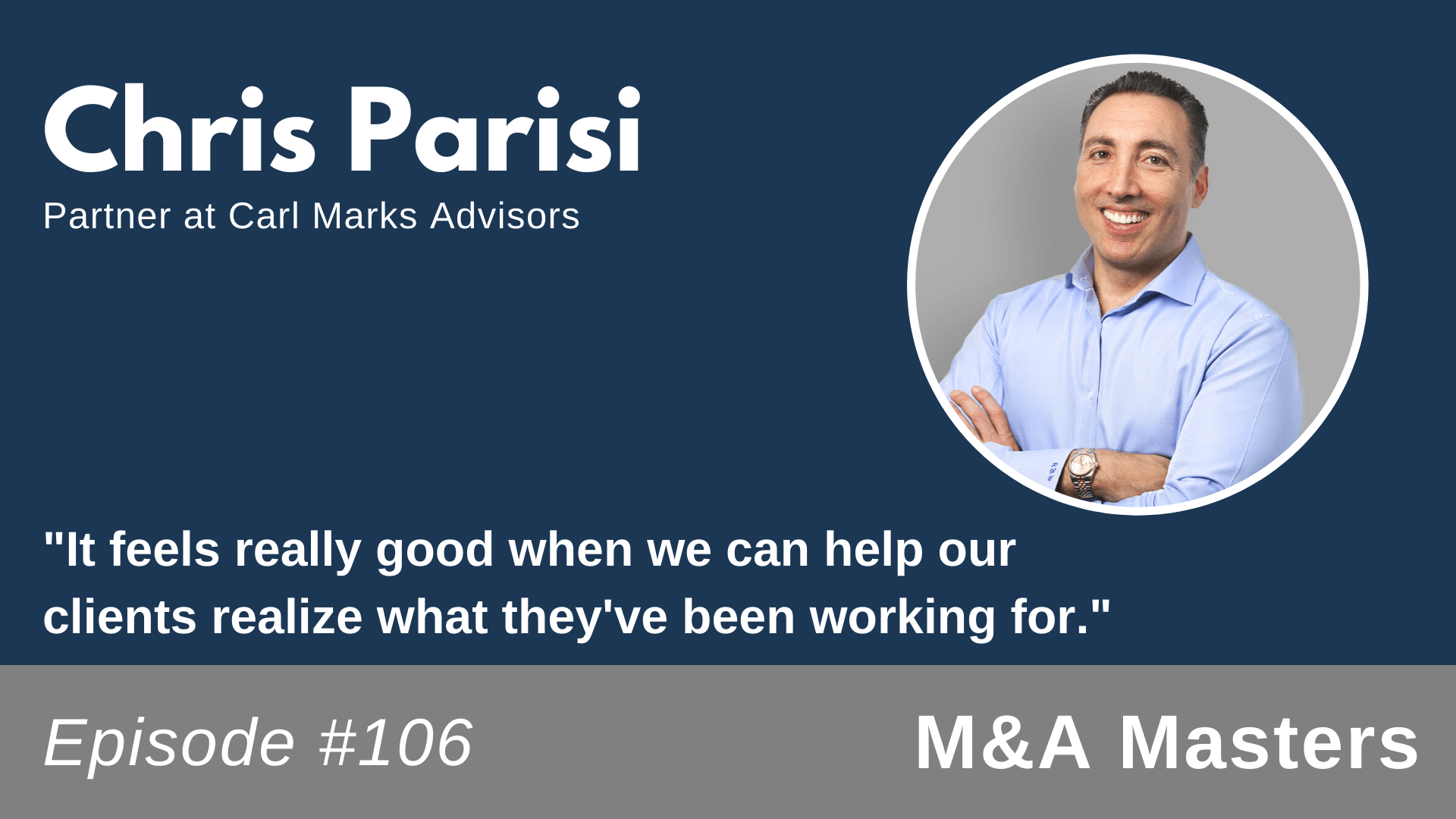 M&A is never just about chasing numbers…. It’s about the people who trust you with their business… A business that represents generations of hard work—and a family’s legacy. My guest Chris Parisi knows this well. At Carl Marks Advisors, which has been around since 1925, Chris secures clean exits for