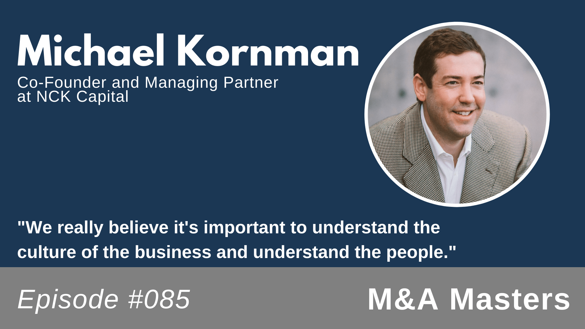 On this week’s episode of M&A Masters, we speak with Michael Kornman of NCK Capital. NCK Capital acquires controlling interests in lower-middle market companies and takes them to the next level with “right-fit” capital structures, inspiring management incentives, and nurturing support. Michael says, “We love the lower middle market. It’s