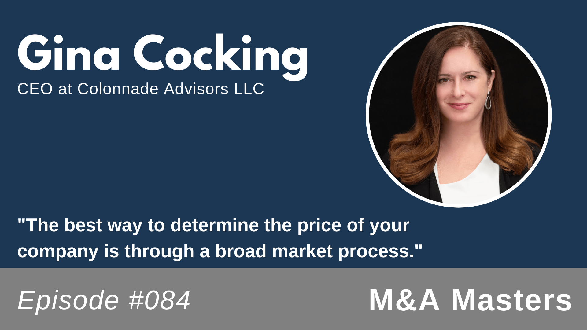 Our guest for this week’s episode of M&A Masters is Gina Cocking, CEO and Managing Director of Colonnade Advisors LLC. Colonnade Advisors is a boutique investment banking firm that specializes in merger and acquisition advisory services, providing financial advice to business owners interested in selling their companies, buying competitors, and