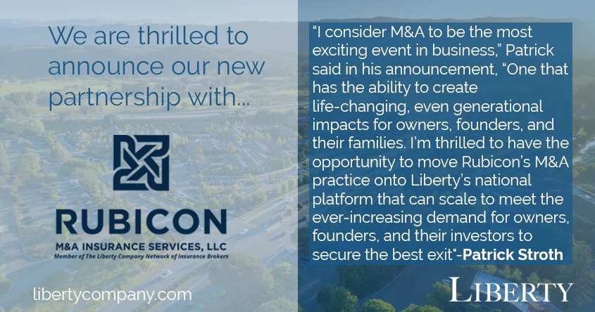 Liberty Company Insurance Brokers is pleased to announce the acquisition of Rubicon M&A Insurance Services, LLC to its national network of specialty insurance brokerages. Rubicon is led by its founder Patrick Q. Stroth, ARM, a trusted authority in executive liability for over 30 years. Given that there was unprecedented demand