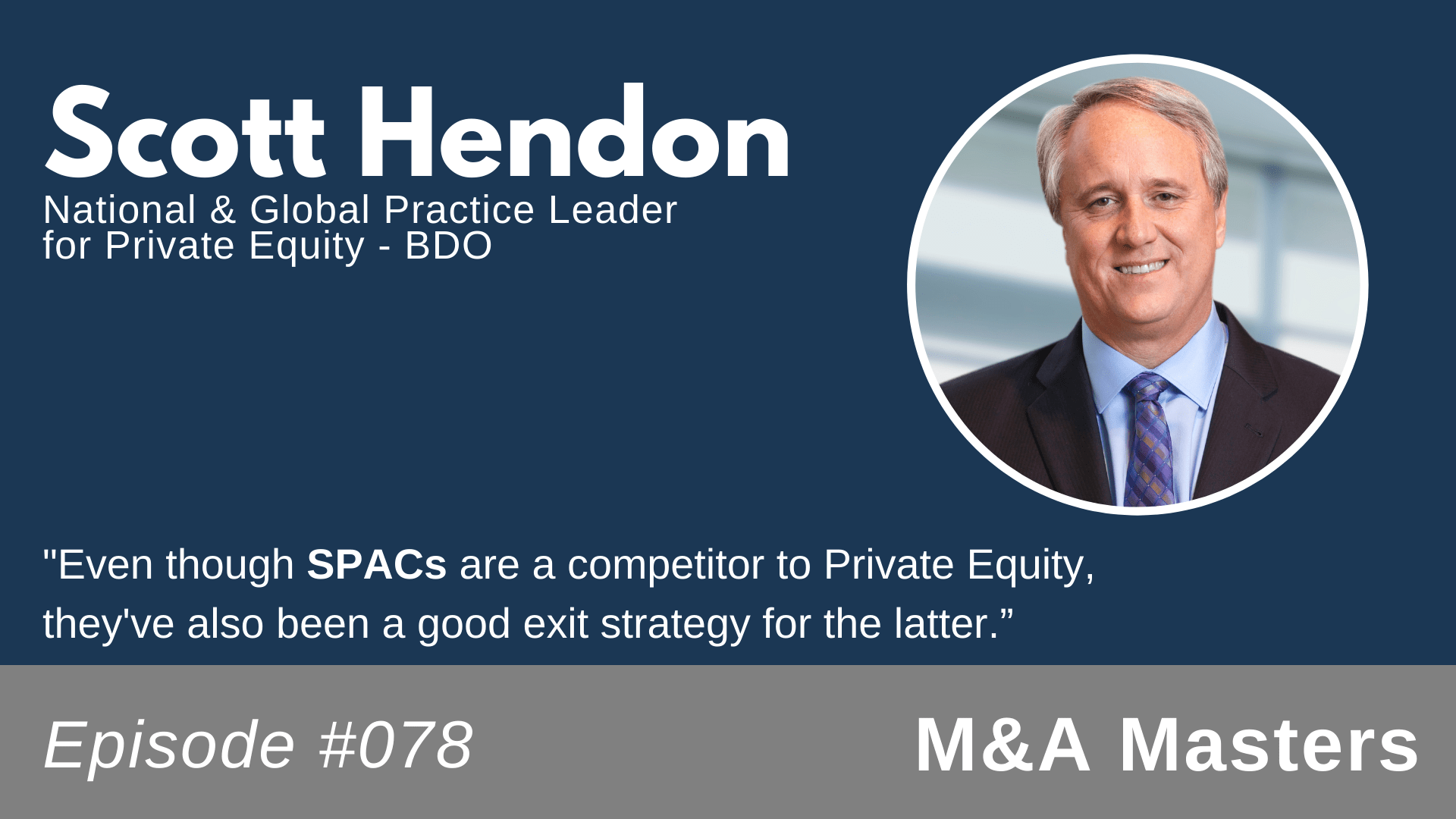 Our guest for this week’s episode of M&A Masters is Scott Hendon of BDO. Scott has been with BDO for 20 years and currently serves as the National & Global Practice Leader for Private Equity. A true icon in M&A, he brings a unique perspective as he knows both the