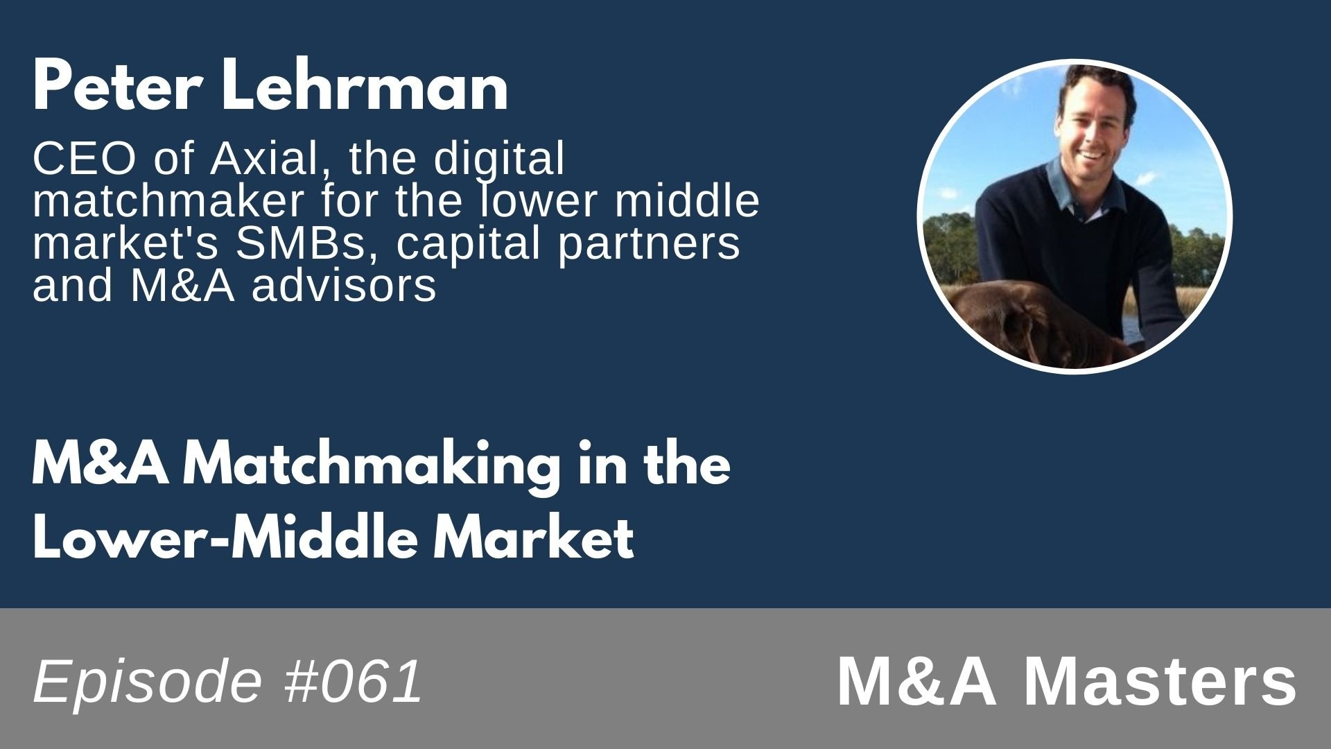 On this week’s episode of M&A Masters, we speak with Peter Lehrman. Peter serves lower middle market owners, acquirers, and advisors as CEO of Axial, the largest trusted online platform used for safely buying, selling, and financing private companies. Over the last 10 years, Axial has established a single